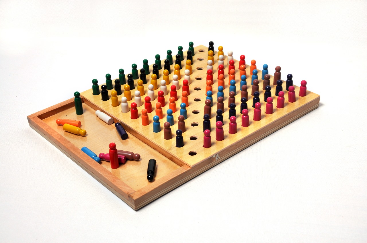 PEGGING BOARD WITH 100 PEGS.